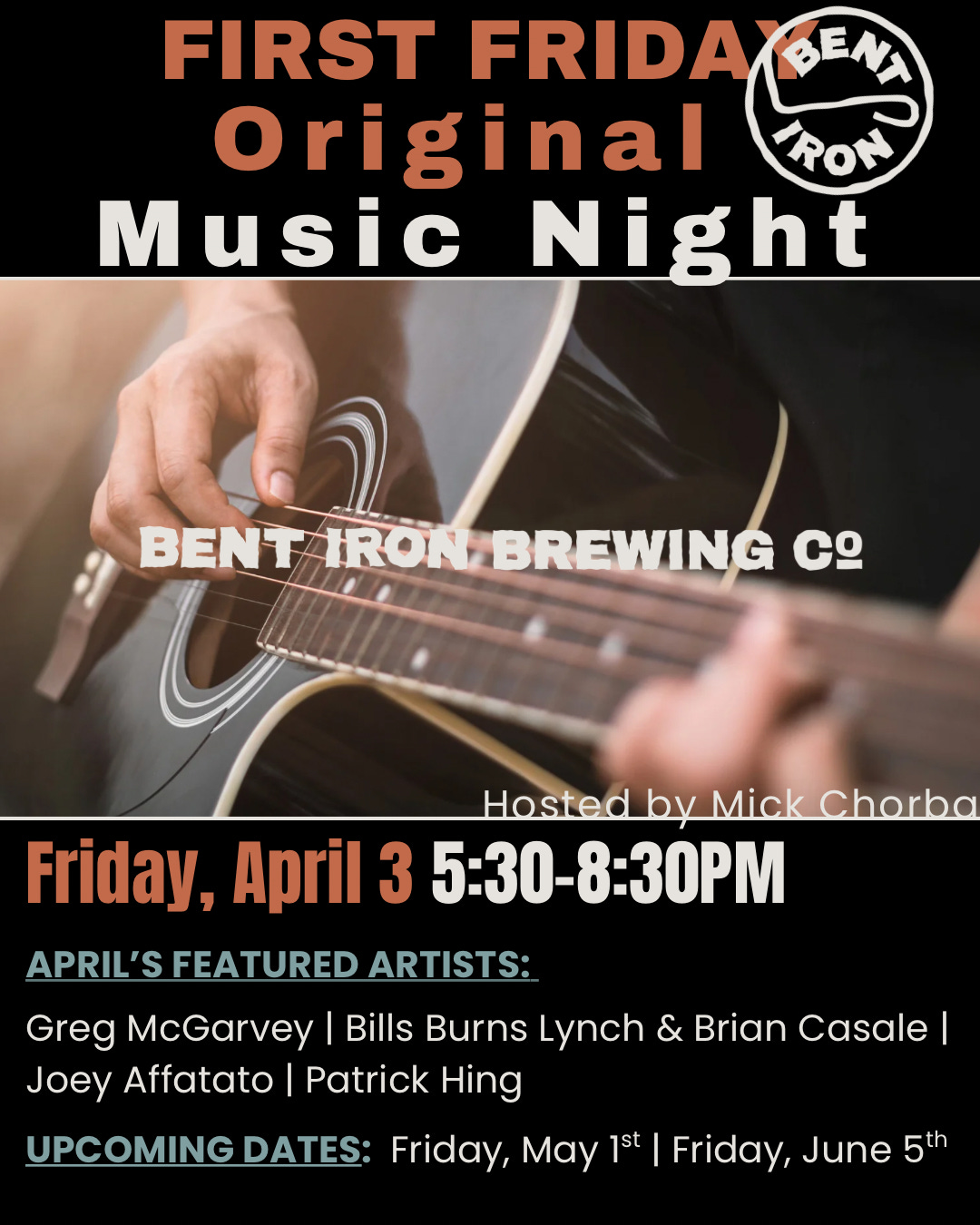 Sat. 3/14/26 - Bent Iron Brewing Co., Hamilton, NJ 5:30 - 8:30 (Mick/Ron Duo)